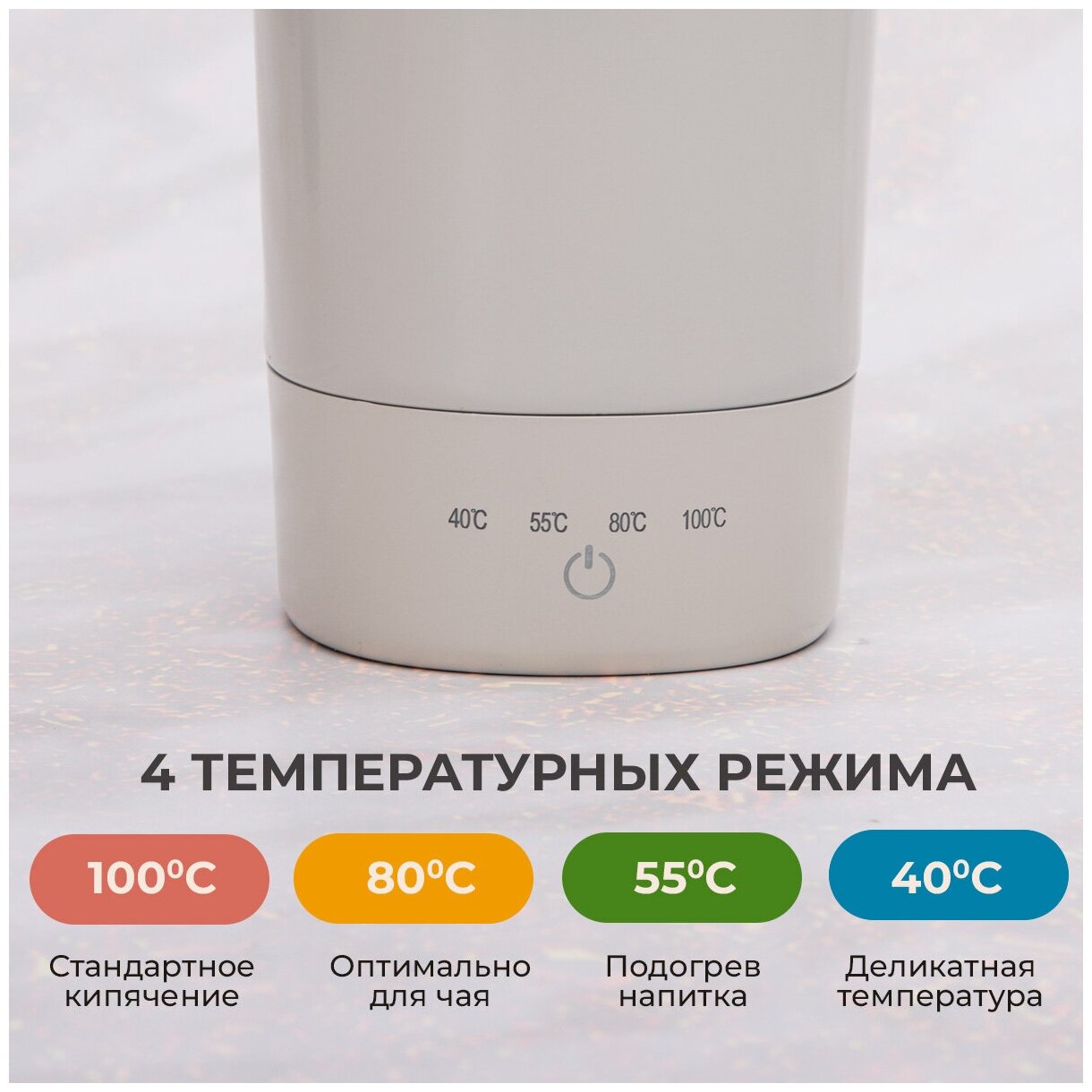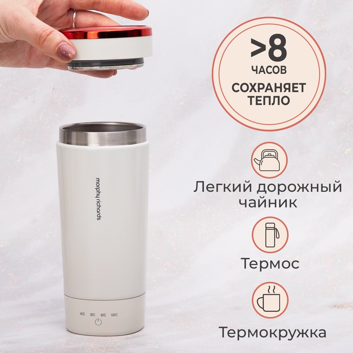 Лучшие цены. Термокружка с функцией подогрева Morphy Richards Лайфстайл, объемом 300 мл - это и легкий дорожный чайник, и термос, и термокружка, и термостакан с крышкой - в одном устройстве! 1. Термокружка с функцией кипячения воды; 2. Четырехступенчатая регулировка температуры от 40 до 100 градусов; 3. Вакуумная изоляция позволяет 8 часов держать тепло; 5. Двухслойная изоляция цельнометаллического корпуса из нержавеющей стали. 6. Компактные параметры и вес прибора позволяют захватить его с собой в рюкзаке или сумочке. Магазины в вашем городе.