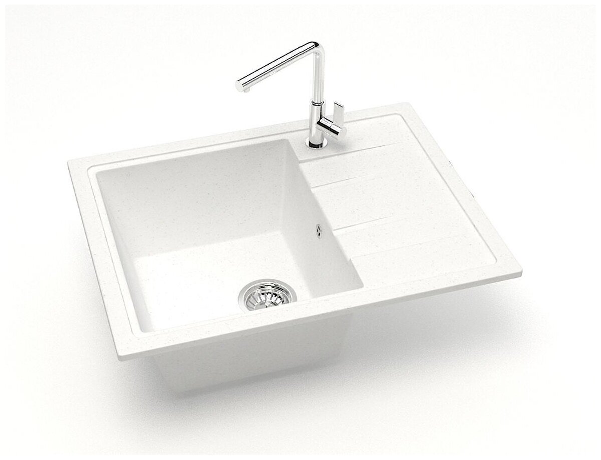 Лучшие цены. Кухонная мойка Zett Lab Модель 150 57,5x47 T150Q001 на основе натурального молотого кварца. Высокая прочность, экологичность. Стойкость к воздействию агарессивных сред и ультрафиолетовому излучению. Стойкость к температурным перепадам: от -40 до +110 градусов Цельсия. Технические данные: - Цвет: белый лед. - Поверхность: матовая. - Материал: искусственный кварц. - Форма: прямоугольная. - Универсальная ориентация: крыло слева или справа. - Отверстие под смеситель: нет, можно просверлить. Магазины в вашем городе.