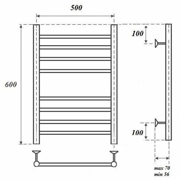 Водяной полотенцесушитель POINT PN10156S П8 500x600, с креплением, хром