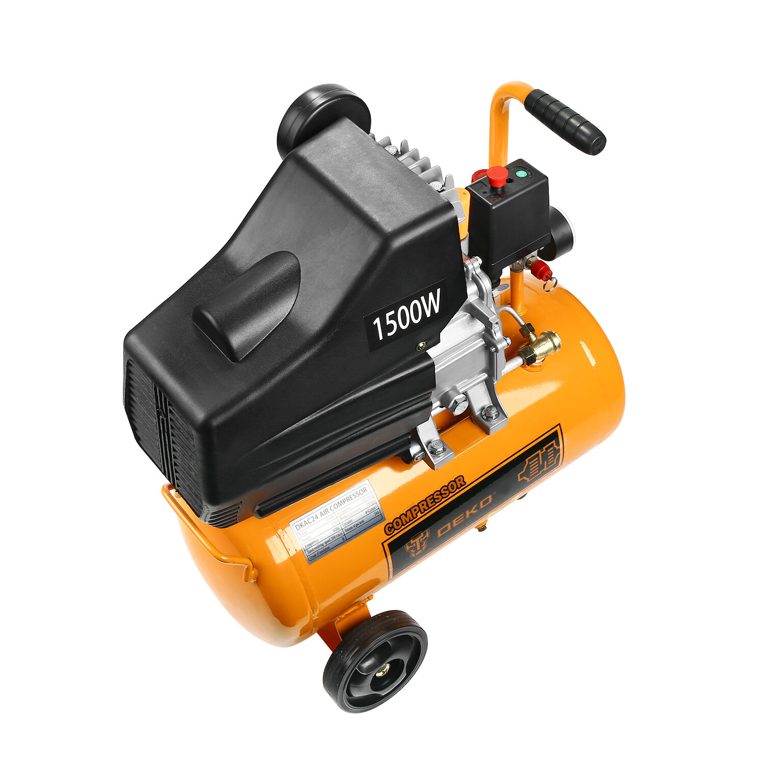 Компрессоры Компрессор воздушный поршневой масляный DEKO DKAC24, 24л ресивер, 260 л/мин жёлтый 018-1107