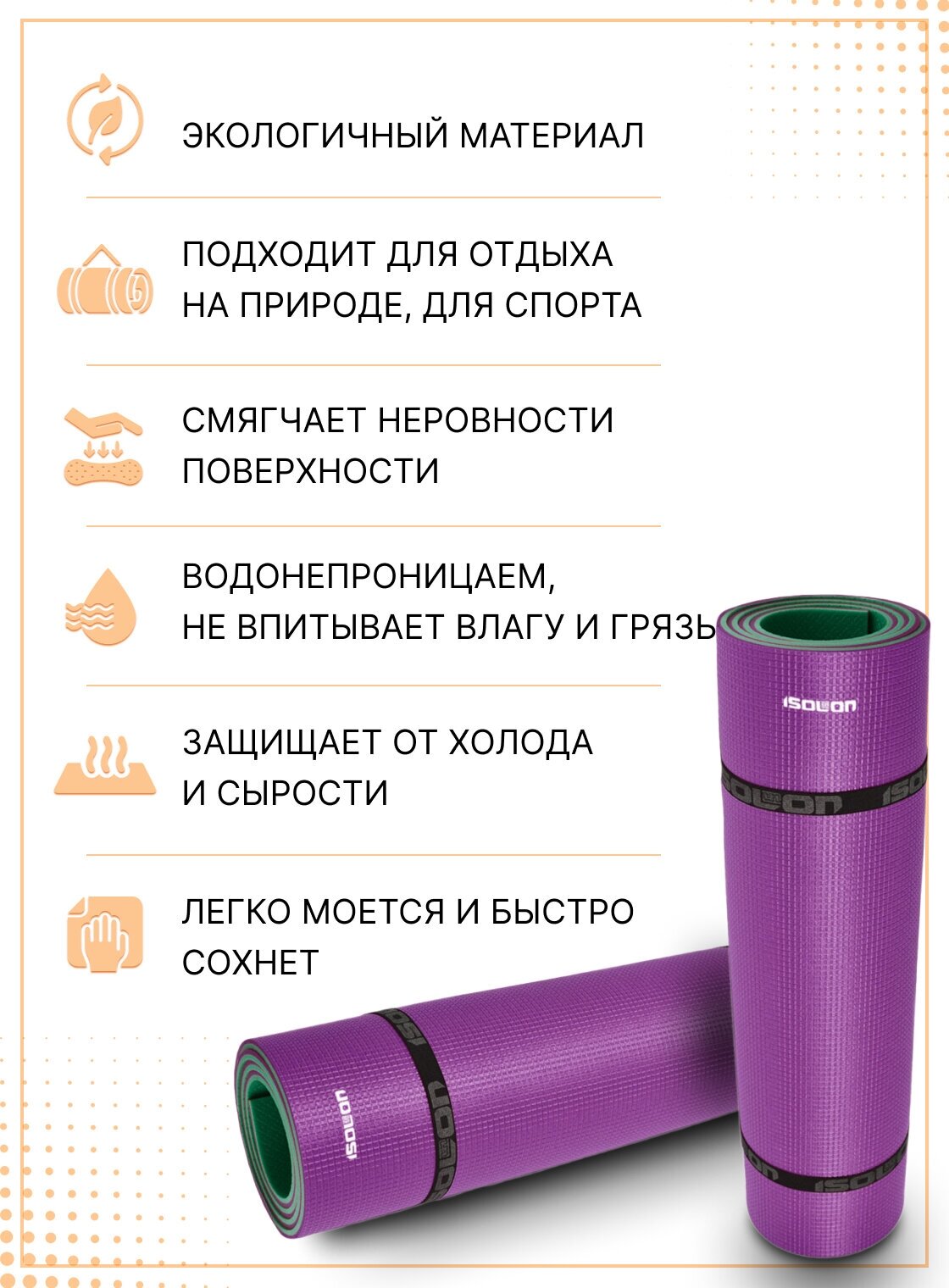 Коврик для туризма и отдыха классический Isolon Tourist 8 мм, 180х60 см жёлтый/фиолетовый