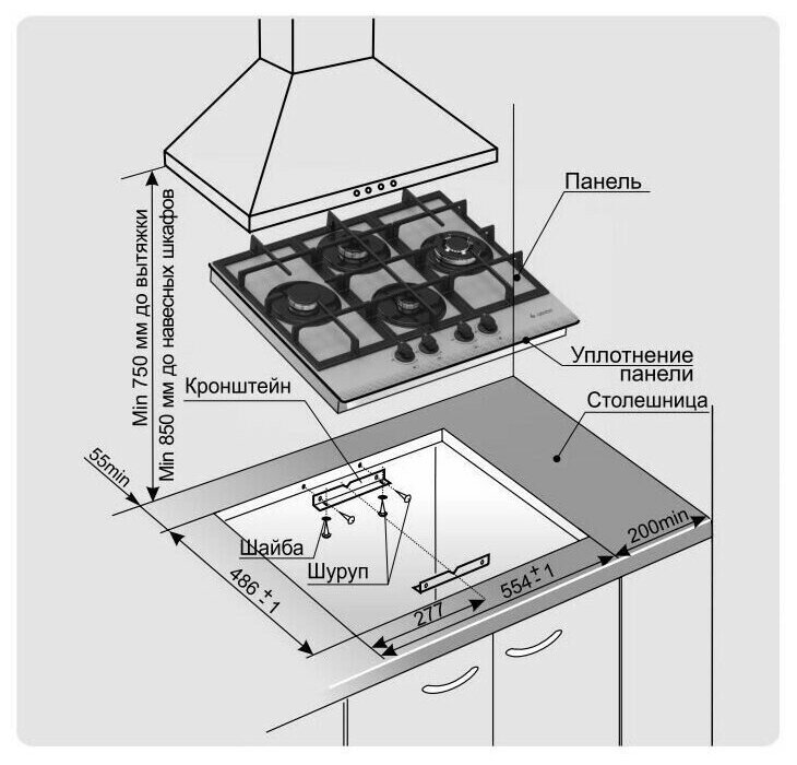 | Размеры для встраивания (ШхГ) | 554x486 мм |