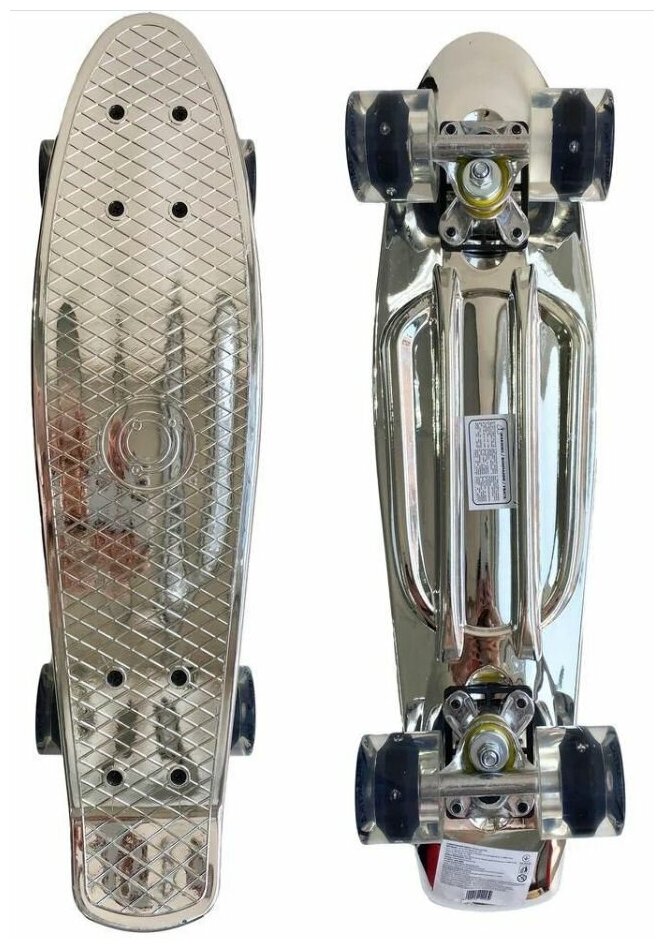 Скейтборд Скейтборд однотонный глянцевый со светящимися колесами, цвет - серебристый