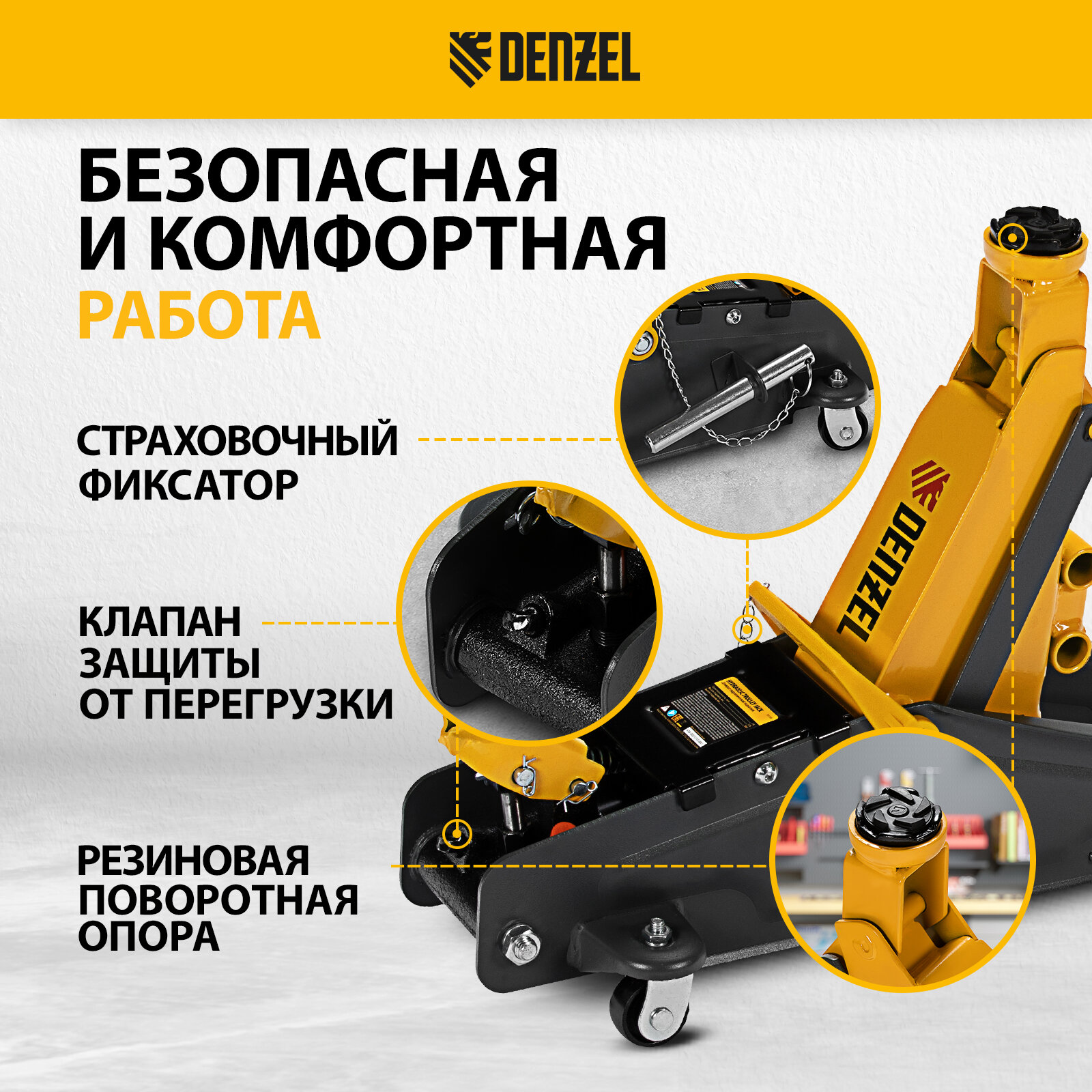 DENZEL Домкрат гидравлический подкатной с фиксатором, 2,8 т, 135-385 мм Denzel
