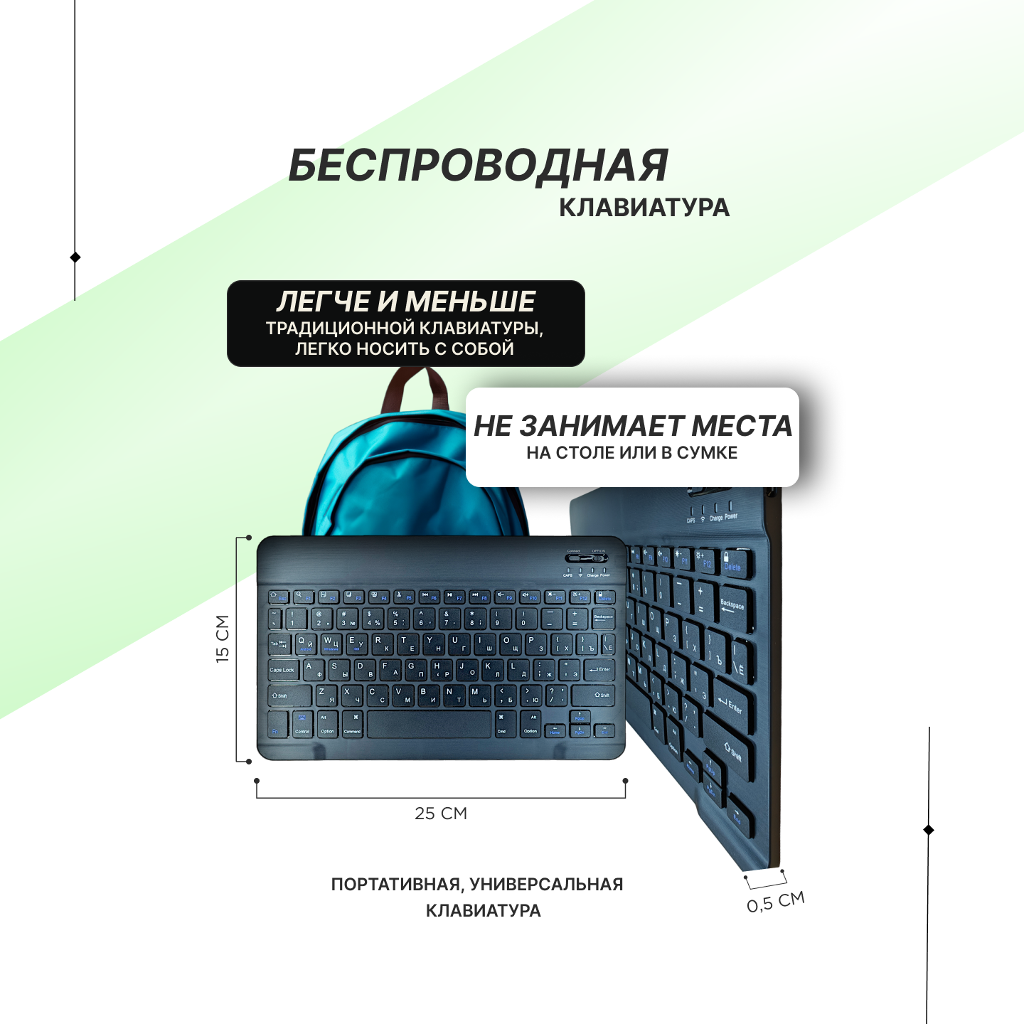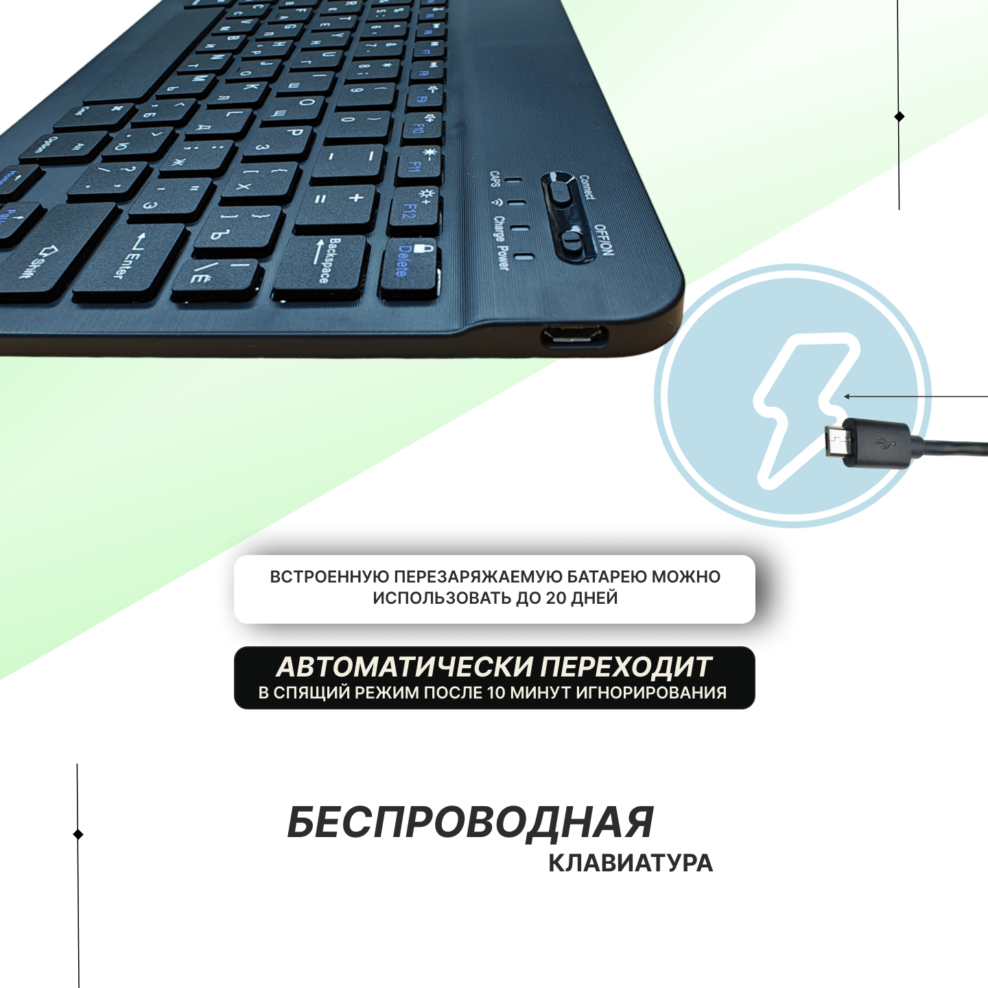 Клавиатуры Клавиатура мембранная беспроводная для компьютера/ноутбука/планшета/телефона, 78 клавиш, Bluetooth, русская раскладка, бесшумные клавиши, цвет черный.