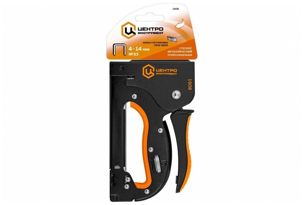 Лучшие цены. Усиленный металлический степлер Центроинструмент 1608 имеет прочный корпус. Инструмент оснащен удобной рукояткой с прорезиненной накладкой, которая обеспечивает отсутствие скольжения в процессе работы. Инструмент подойдет для соединения тонких деревянных деталей или прибивания материала к деревянной основе. Преимущества степлера Центроинструмент 16086: -Полностью металлический корпус; -Прорезиненная рукоятка; -Колесо регулировки силы удара; -Удобная зарядка скоб; -Фиксация ручки – для удобного хранения. Магазины в вашем городе.