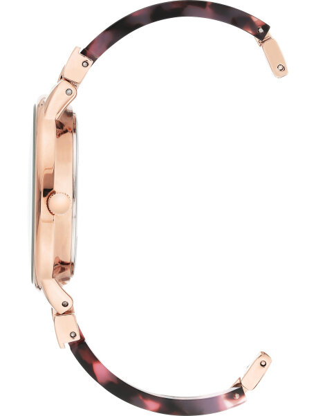 Лучшие цены. Женские часы. Коллекция Plastic Set. Подарите себе новые впечатления, благодаря этому стильному аксессуару. Время быть оригинальной и незабываемой. Тип механизма: кварцевый. Корпус: металл с розовым PVD покрытием. Циферблат: перламутровый коричневый. Браслет: металлический с розовым PVD покрытием с пластиковыми вставками. Камень-вставка: циферблат украшен кристаллами Swarovski. Водозащита: 30WR. Стекло: минеральное. Габаритные размеры: D 36мм. Магазины в вашем городе.