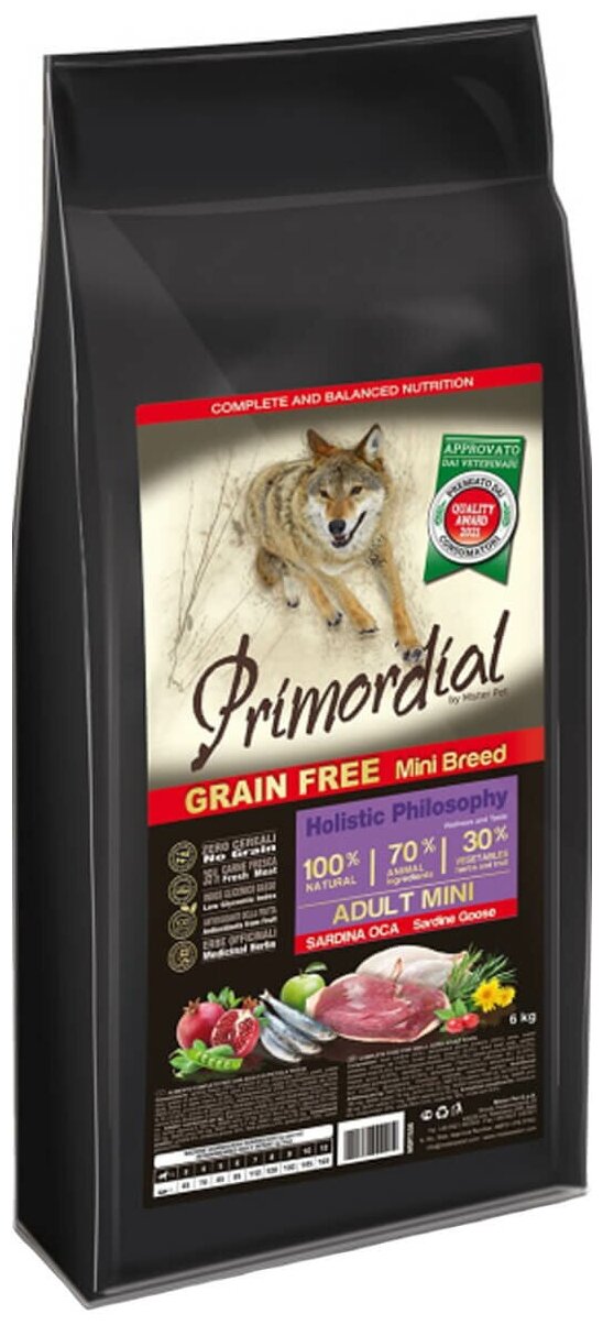 PRIMORDIAL MINI ADULT 6кг сухой корм для собак мелких пород беззерновой сардина гусь