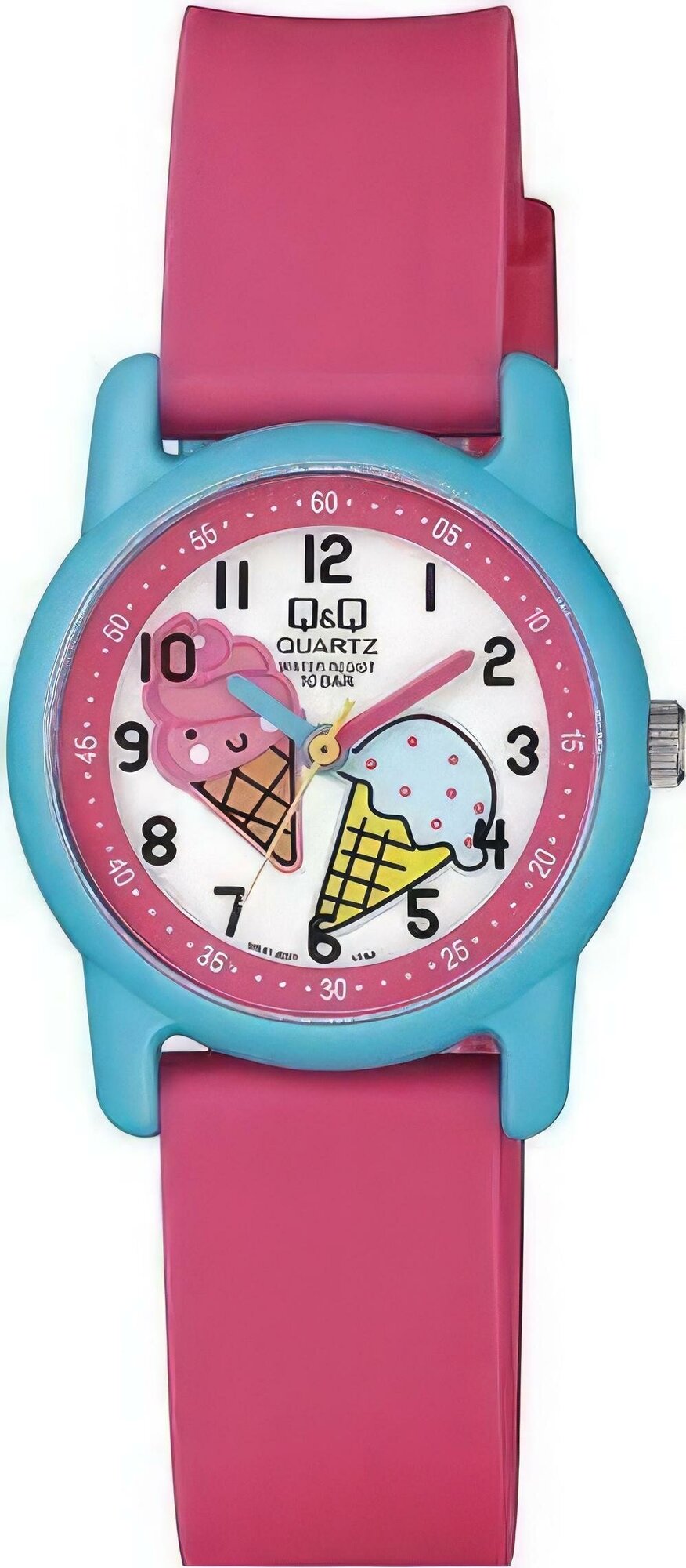 Лучшие цены. Детские японские наручные часы Q&Q VR41-007 [VR41 J007Y]. Кварцевый механизм в высокой точностью +/-20 сек в месяц. Прочное, устойчивое к царапинам, пластиковое стекло обеспечит защиту часов от повреждений. Высокая водонепроницаемость 100WR (10 Бар) идеально подходит для плавания с маской и трубкой. Корпус часов сделан из высококачественного пластика. Ремешок каучуковый с классической застежкой – это стильно, удобно и практично. Магазины в вашем городе.