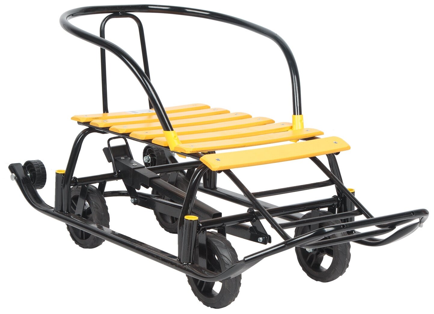 Санки детские с выдвижными колесами, спинкой и ручкой GALAXY "Мишутка-1" Универсал (черный-желтый)