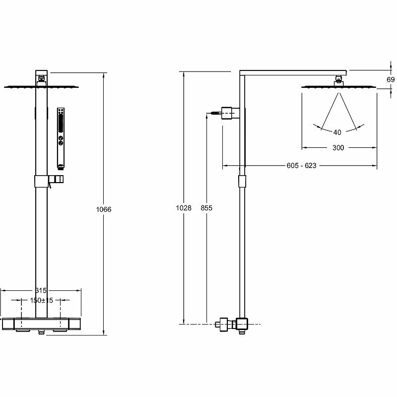 Лучшие цены. Душевая система Jacob Delafon Strayt E98321-CP с термостатическим смесителем, ручным душем и верхним тропическим душем. Лаконичная модель с прямыми и строгими линиями для ванных комнат в минималистичном стиле или в стиле хай-тек. - Изготовлена из качественной латуни с гладким глянцевым покрытием цвета хром. Поверхность защищена от известковых отложений, проста в уходе. - Верхний душ размером 25x25 см с возможностью регулировки наклона на 40 градусов вперед или назад. Магазины в вашем городе.