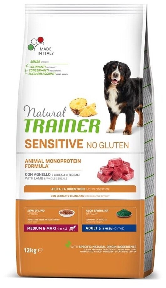 TRAINER NATURAL SENSITIVE NO GLUTEN MEDIUM & MAXI ADULT LAMB безглютеновый для взрослых собак средних и крупных пород с ягненком (12 кг)