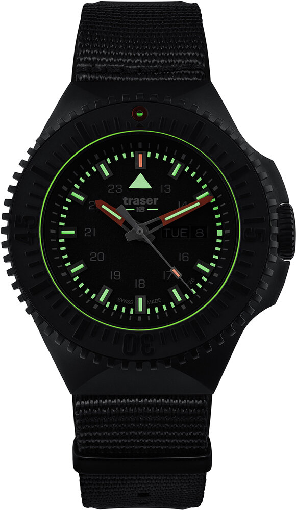 Лучшие цены. Пол: мужские. Тип часов: спорт. Механизм: кварцевые. Форма корпуса: круглые. Материал корпуса: нержавеющая сталь. Цвет корпуса: черный. Покрытие корпуса: полное PVD черного цвета. Водозащита: 200м (20 АТМ). Стекло: сапфировое. Циферблат: со стрелками. Цвет циферблата: черные и темно-серые тона. Цифры/метки: арабские цифры; штрихи. Календарь: дата и день недели. Подсветка: тритиевая подсветка/тригалайт. Браслет/ремешок: матерчатый/текстильный ремешок. Цвет браслета/ремешка: черный. Магазины в вашем городе.