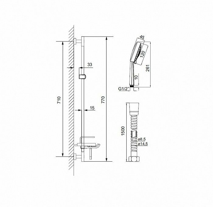 | Комплектация | лейка / стойка / штанга / душевой шланг / крепление лейки |