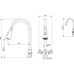 Лучшие цены. Коллекция: Hessen-Grimm; Тип: смеситель; Назначение: для кухонной мойки; Встроенные системы: нет; Тип управления: двухвентильное; Тип монтажа: на мойку, на столешницу; Механизм: керамическая кран-букса; Материал корпуса: латунь; Механизм скрытого монтажа: не предусмотрен; В комплекте с душем (лейкой): с душем; Длина шланга: 150 см; Количество режимов душевой лейки: 2 режима; Переключатель режимов лейки: кнопочный; Тип излива: поворотный; Выдвижной излив: есть; Высота излива: 204 мм; Высота смесителя. Магазины в вашем городе.
