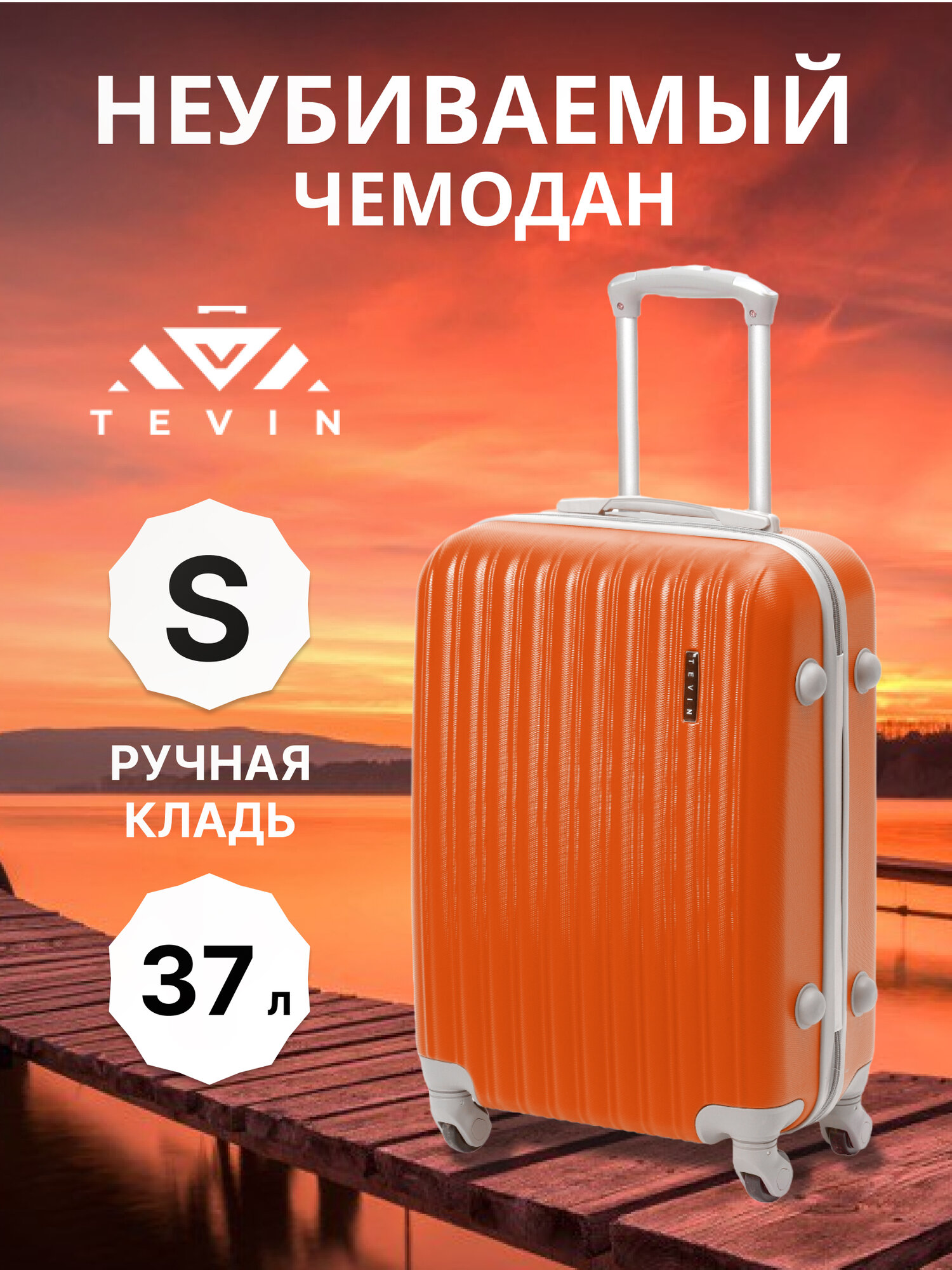 Чемоданы Чемодан на колесах дорожный ручная кладь в самолет s TEVIN размер С компактный 55 см ручной 37 л cabin 21" легкий и прочный абс пластик Оранжевый