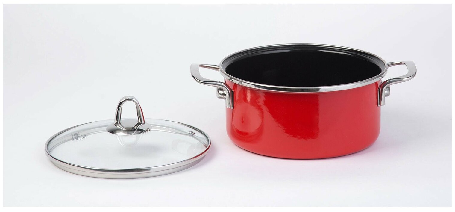 Эмалированная кастрюля, объем 3,7 л, диаметр 20 см, высота 13 см, со стеклянной крышкой, цвет красный 5000991120 Metallica SOLID 5 759 ₽ Подробнее