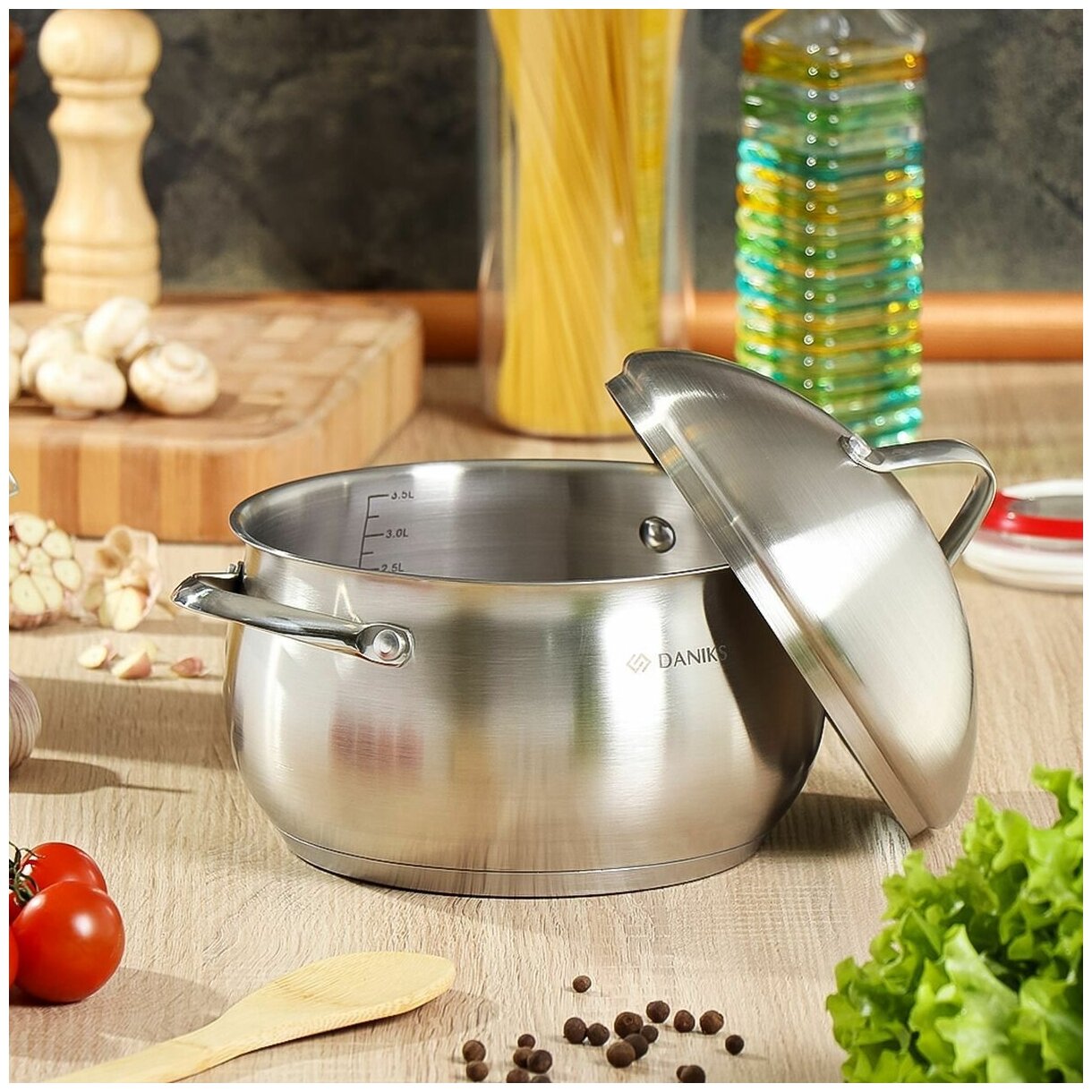 Кастрюля Кастрюля нержавеющая сталь, 3.9 л, с крышкой, Daniks, Мальта, GS-01345KS-20CA