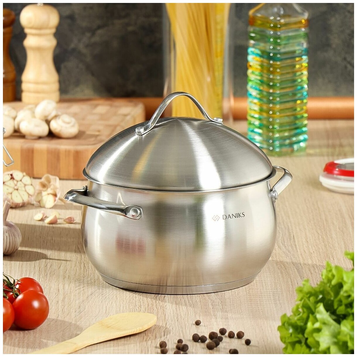 Лучшие цены. Кастрюля сделана из высококлассной нержавеющей стали. Благодаря высокой теплопроводности используемых материалов готовить можно даже на низкой мощности плиты, что позволяет снизить энерготраты. Индукционное трехслойное дно. Оно долго удерживает тепло, что также способствует экономии энергии. Дно прогревается равномерно. что позволяет избежать резких температурных перепадов — пища не пригорает. Толщина стенок: 0.5 мм. Можно использовать на газовых, электрических, стеклокерамических, индукционных плитах. Магазины в вашем городе.