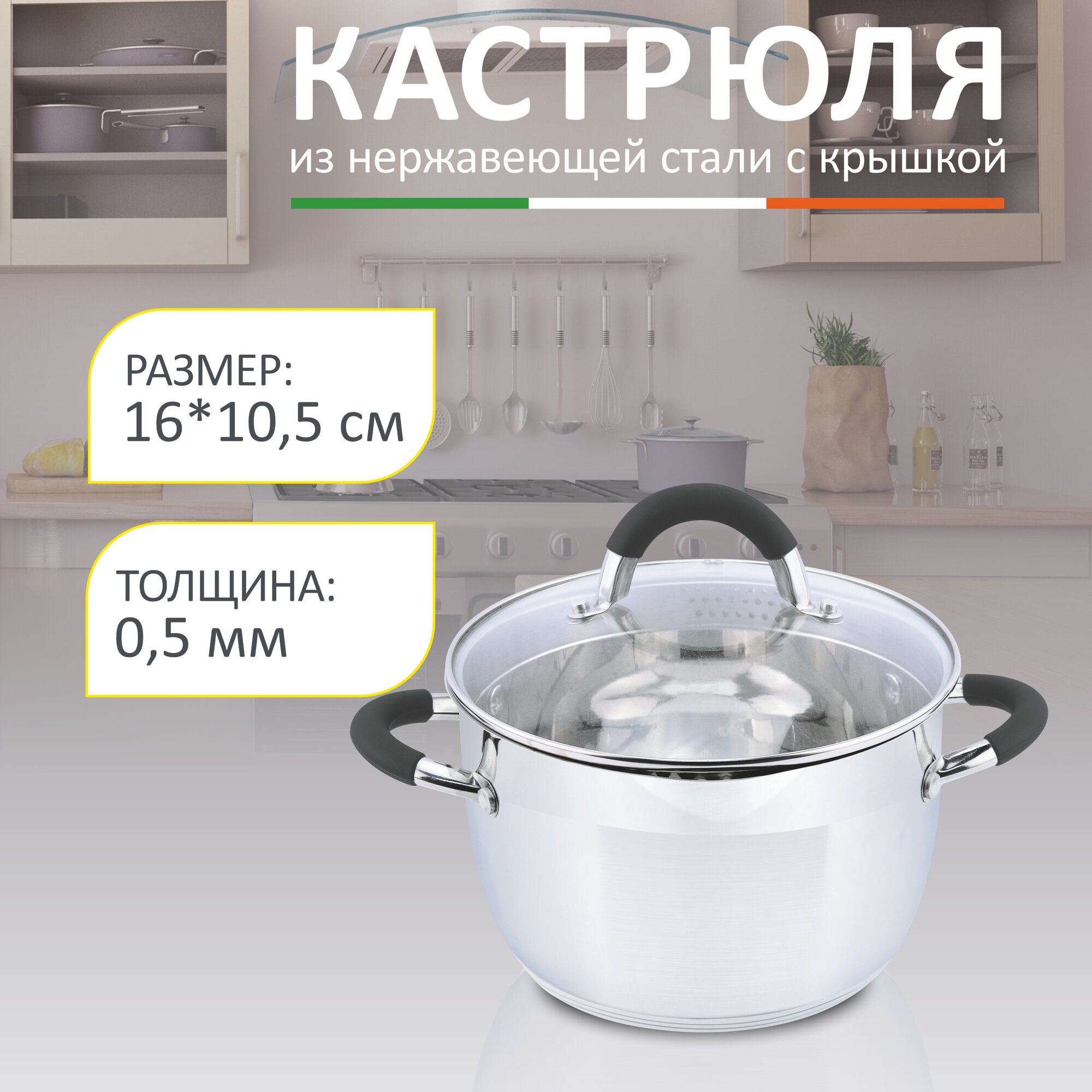 Кастрюля BRAVO, объем 2,9 л, из нерж стали с крышкой из жаропрочного стекла, размер 18*11,5 см 1 733 ₽ Подробнее