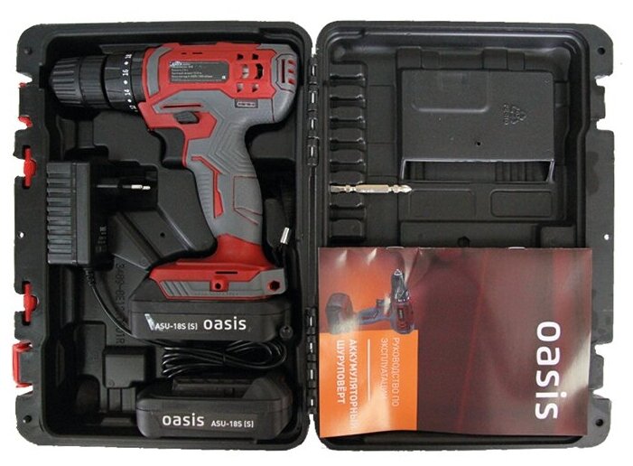 Лучшие цены. Аккумуляторный шуруповерт OASIS ASU-18S (J). Ударный синхронный аккумуляторный шуруповёрт Oasis предназначен для закручивания резьбовых соединений разных типов (винтов, болтов, шурупов), а также сверления в металлических, деревянных, пластмассовых и других подобных материалах. Наличие быстрозажимного патрона, подсветки, функции реверса – всё это позволяет легко и без труда выполнить любые бытовые задачи. Магазины в вашем городе.