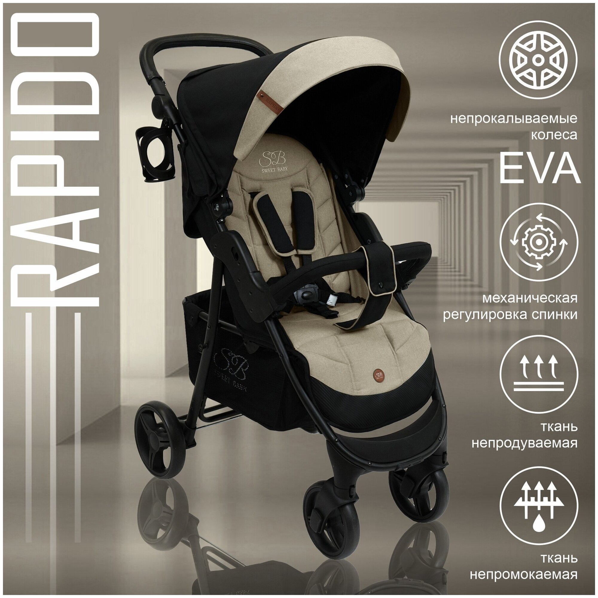 Лучшие цены. Удобная и функциональная детская прогулочная коляска Sweet baby Rapido предназначена для детей с шести месяцев и до трех лет. Коляска с отличной амортизацией имеет отличную проходимость и маневренность Просторное сиденье с механической регулировкой спинки (3 положения). Раздвижной увеличенный капюшон (4 положения) с козырьком закрывают малыша от солнца, ветра и снега. Удобная регулируемая подножка (3 положения) с теплой накидкой на ножки сделает прогулки максимально комфортными. Магазины в вашем городе.