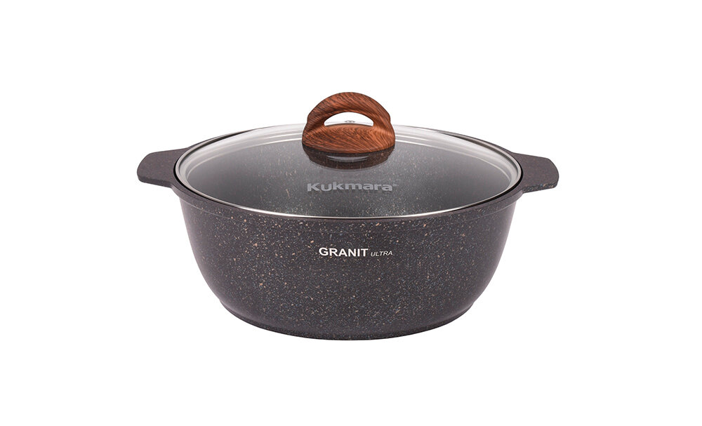 KUKMARA Кастрюля-жаровня Granit ultra, 3 л, стеклянная крышка, антипригарное покрытие