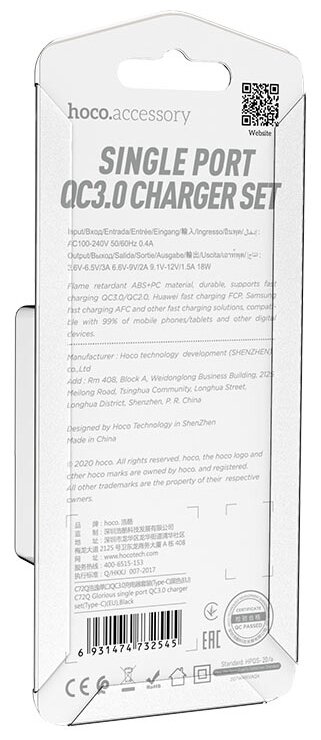 Лучшие цены. Сетевой адаптер питания Hoco C72Q Glorious - это зарядное устройство USB, которое оснащено одним USB портом и предназначено для подключения к бытовой электросети 220 вольт. Сетевая зарядка Hoco C72Q обеспечивает поддержку функции быстрой зарядки QuickCharge QC3.0, QC2.0, FCP, AFC и других протоколов быстрой зарядки. В комплект зарядного устройства входит кабель с разъёмом USB Type-C, длиной 1 метр. Магазины в вашем городе.
