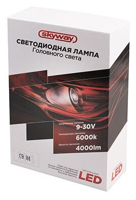 Лучшие цены. Автолампа-LED H4(C9) 12/24V 22W 6000K 4000Lm 2-конт SKYWAY комп.2 шт радиатор+вентилятор охл - Светодиодные лампы являются долговечным и наиболее практичным источником света. Лампа отличается от обычных более длительным сроком службы за счет качественной пайки элементов, ярким освещением. Данная модель сделана из экологически чистого материала, который также предотвращает перегрев и преждевременное перегорание лампы. Легко устанавливается, экономично расходует заряд аккумулятора. Магазины в вашем городе.