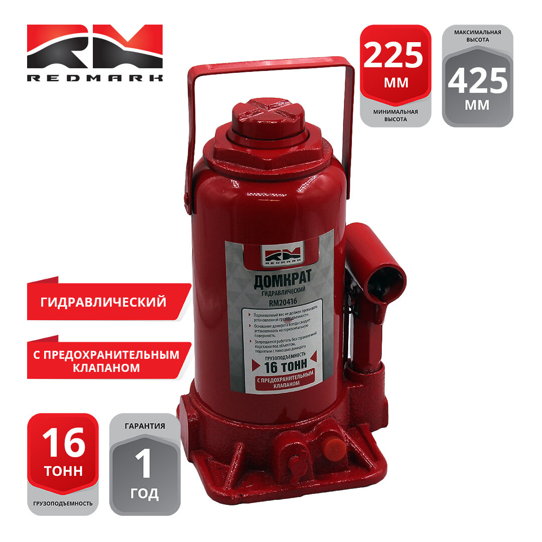Домкрат RedMark, гидравлический, 16 тонн, с перепускным клапаном, высота подъёма 425-225 мм 3 804 ₽ Подробнее