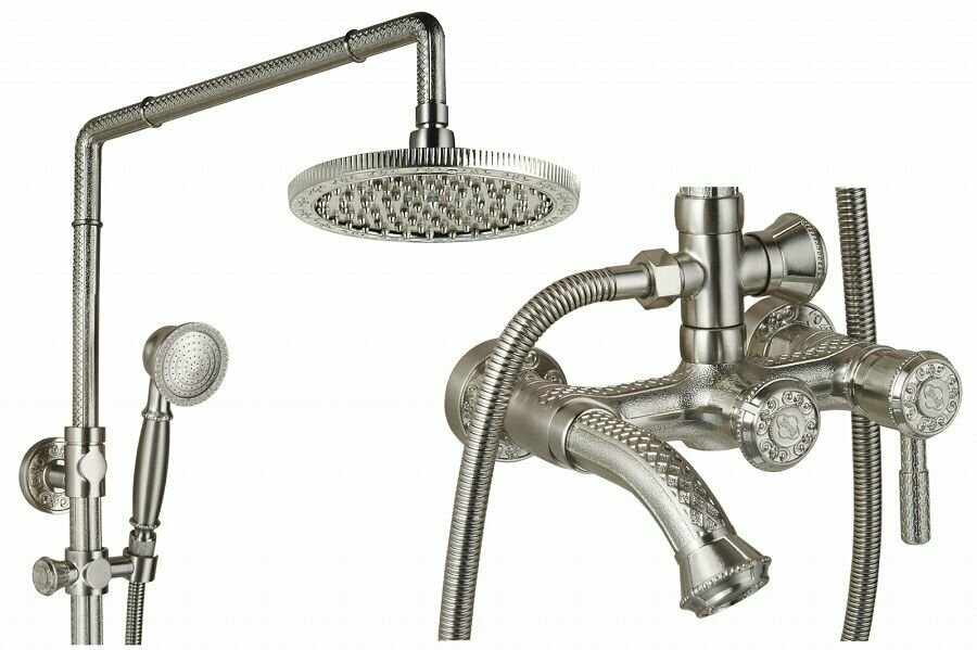 Душевая стойка Zorg Antic A 201DS-SL, латунь серебро, с орнаментом, с изливом, с тропическим душем