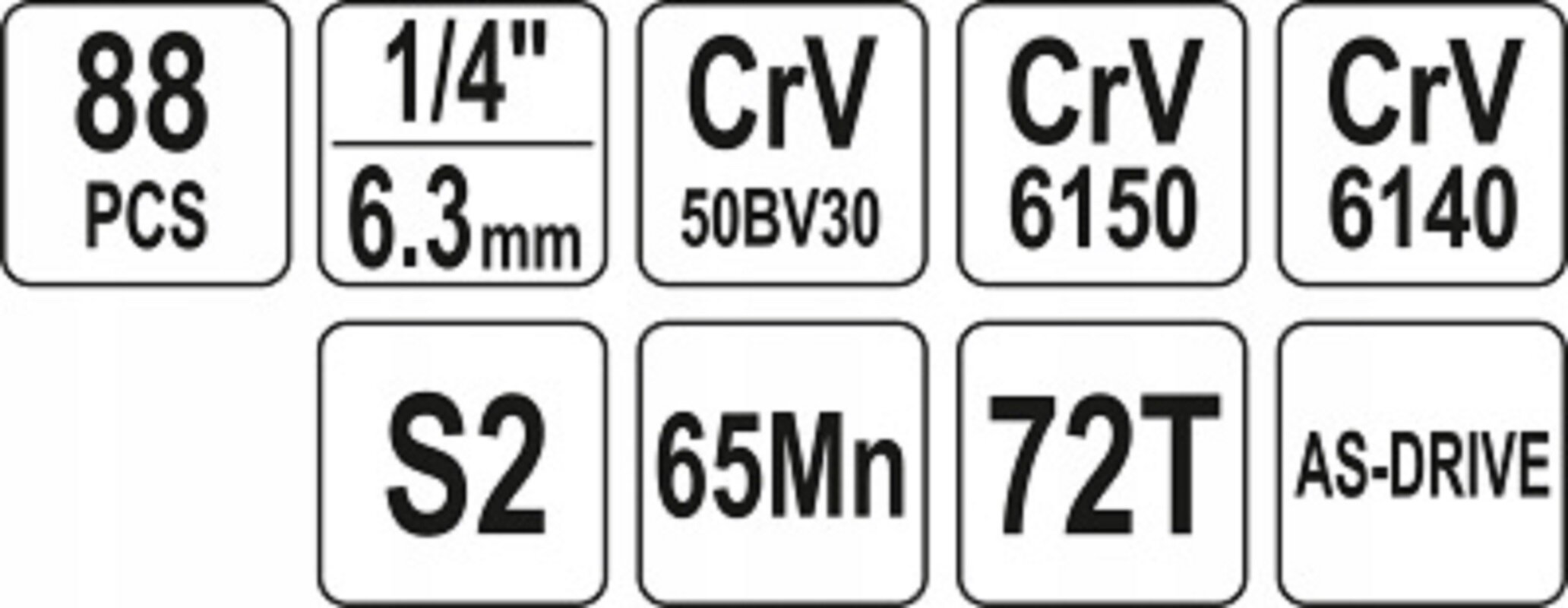 Набор инструментов YATO 88 предметов, CrV, 72T, S2, AS-DRIVE, YT-38928 Отличный подарок