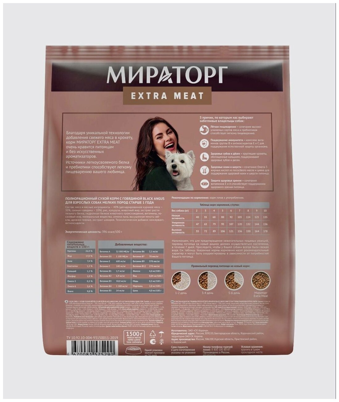 Сухой корм мираторг EXTRA MEAT для взрослых собак маленьких пород с говядиной Black Angus ( 1,5 кг)