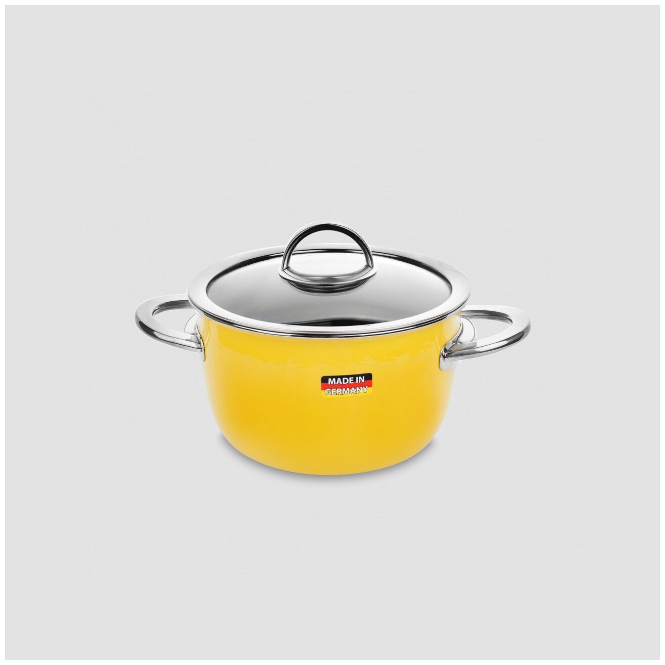Кастрюля высокая KOCHSTAR NEO 1,9 л, 18 см, 33608618, нержавеющая сталь, стеклянная крышка, эмалированная, желтая, Германия