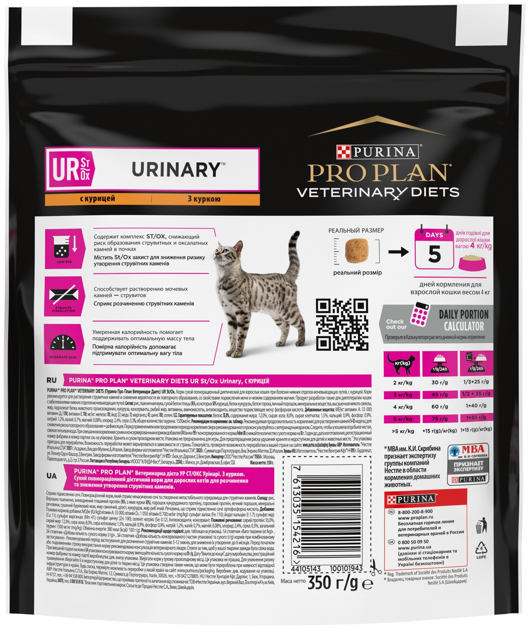 PRO PLAN VETERINARY DIETS UR ST/OX URINARY CHICKEN для взросл кошек при мочекаменной болезни с куриц 0,35 кг