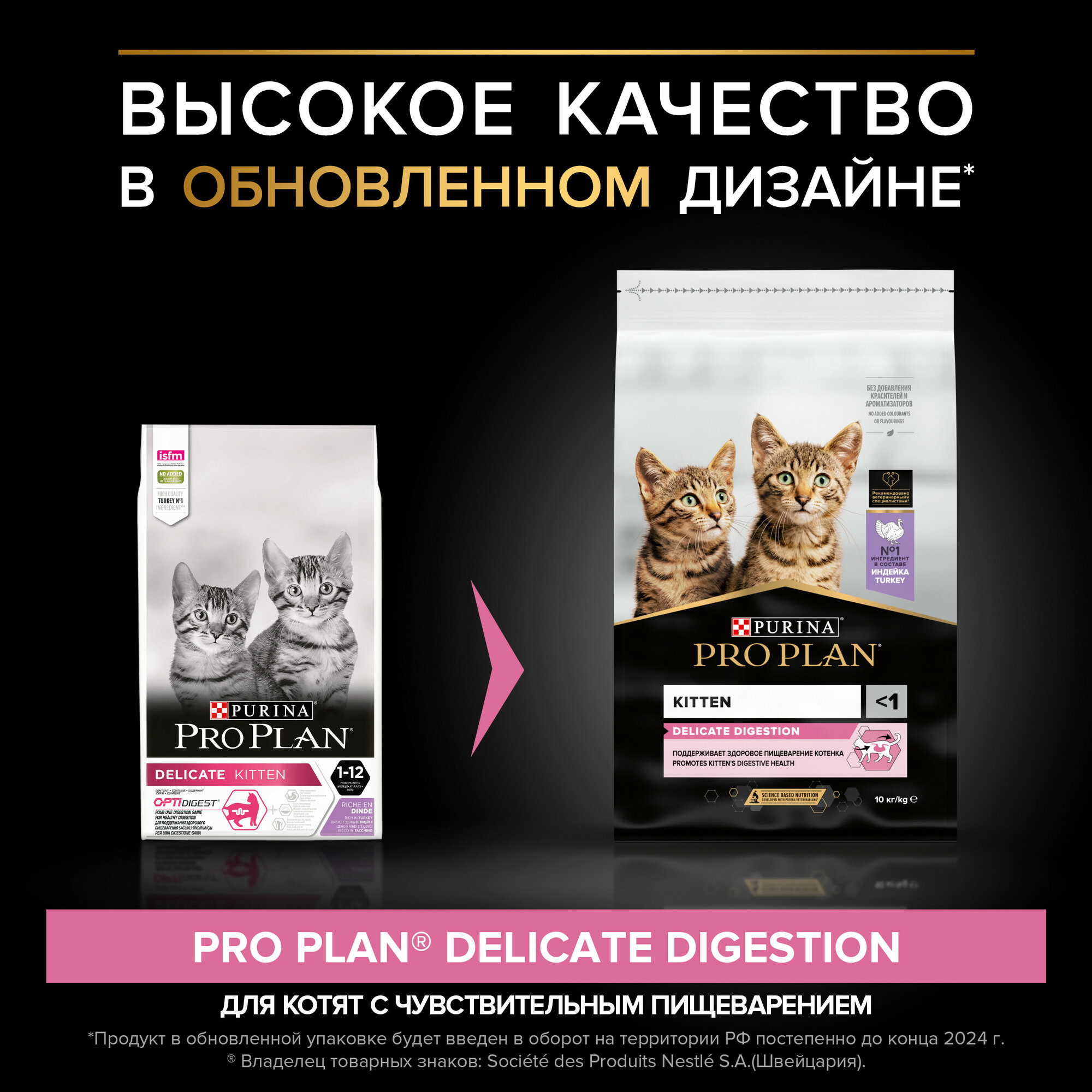 Сухой корм Pro Plan Delicate Kitten для котят с чувствительным пищеварением, с индейкой 3кг