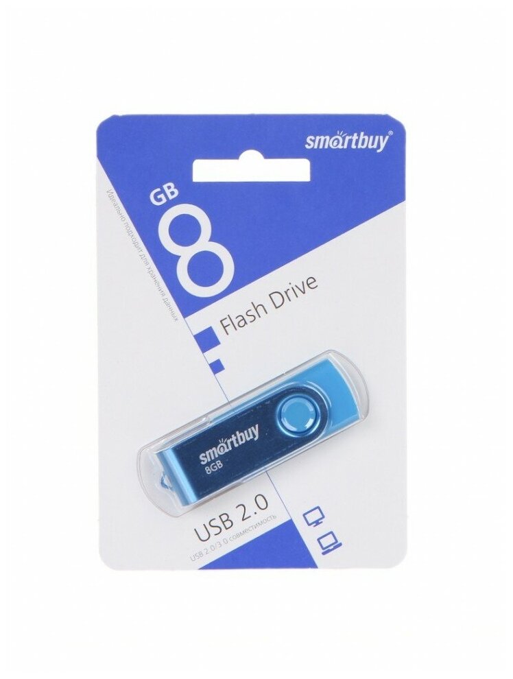 Лучшие цены. Флешка Smartbuy Twist, 8 Гб, USB 2.0, чт до 25 Мб/с, зап до 15 Мб/с, синяя -Вес: 15 г. -Фасовка: 1 шт -Тип индивидуальной упаковки: Блистер -Длина упаковки: 12.5 -Высота упаковки: 1 -Ширина упаковки: 10.5 -Объем упаковки: 0.131 -Объем продукта: 0.1173 -Объем бокса: 3.52 -Материал: Металл, пластик -Объём памяти, Гбайт: 8 -Гарантийный срок, мес: 12 -Температурное ограничение: Нет. Магазины в вашем городе.