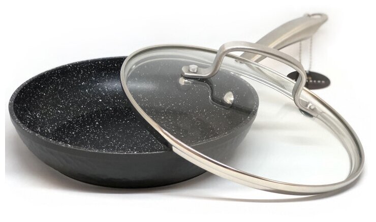 Сковорода с крышкой 24 см Edenberg, антипригарное мраморное покрытие, индукционная