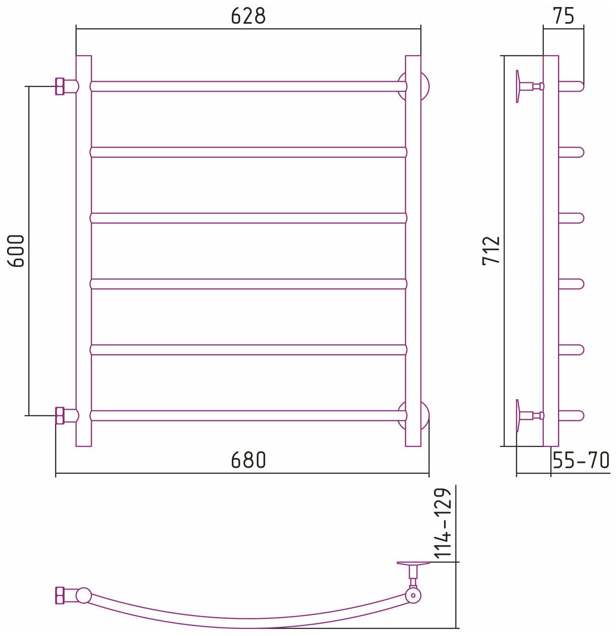 Полотенцесушитель водяной стилье "Версия-Б2" 600х600 (6) Г 18