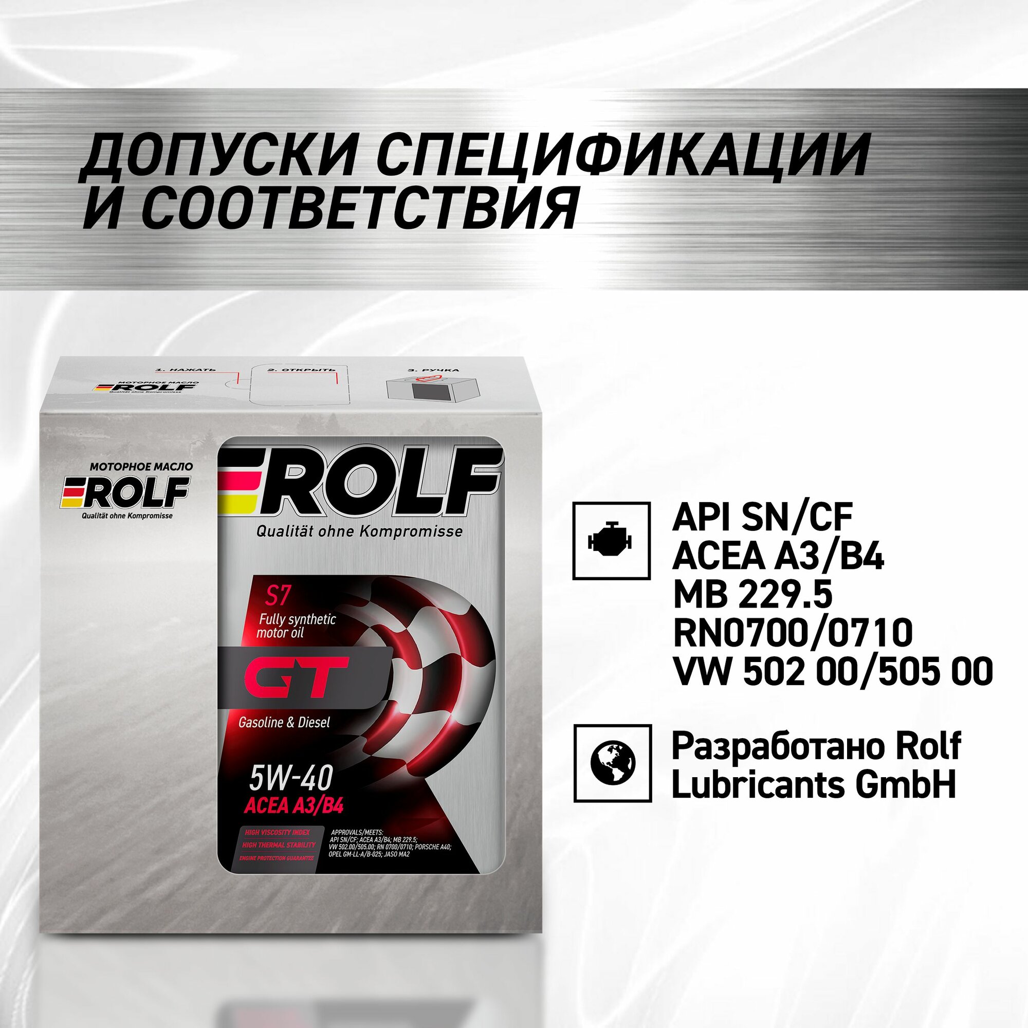 ROLF GT SAE 5W-40 SN/CF (20л) М API SN/CF;VW 502.00/505.00; ACEA A3/B4-16;RN 0700/0710