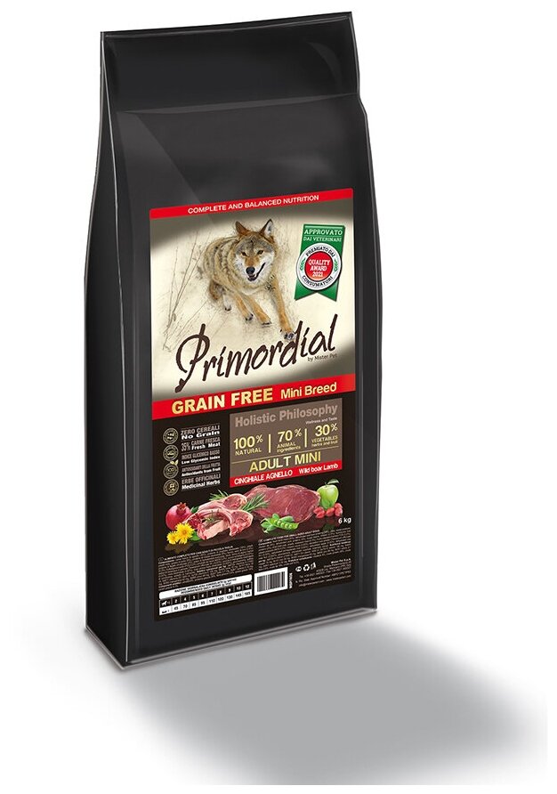 PRIMORDIAL MINI ADULT 6кг сухой корм для собак мелких пород беззерновой кабан ягненок 1 шт