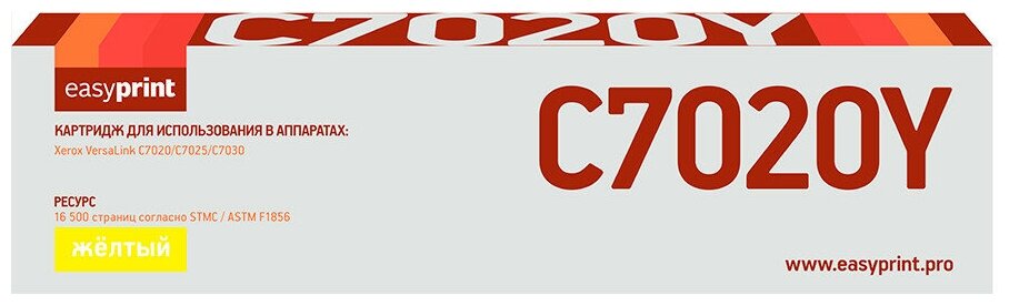Картридж Тонер-картридж EasyPrint LX-C7020Y для Xerox VersaLink C7020/C7025/C7030 16500стр Желтый