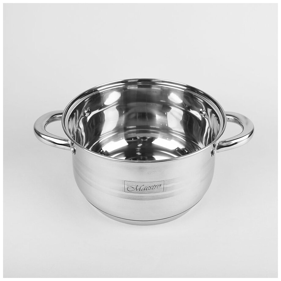 Лучшие цены. Кастрюля Maestro изготовлена из высококачественной нержавеющей стали и имеет многослойное термоаккумулирующее дно, которое позволяет равномерно распределять тепло по всей поверхности и сохраняет его длительное время. Кастрюля имеет полированную внутреннюю и матовую стальную внешнюю поверхности с толщиной стенок 0,8мм, что значительно упрощает процесс ухода и мытья. Кастрюля подходит для всех типов плит, включая индукционные. Магазины в вашем городе.