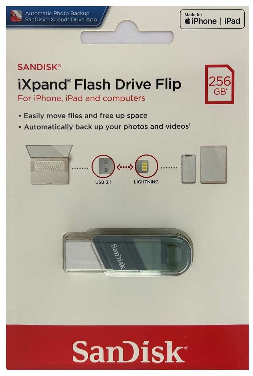 Флеш-накопитель (флэшка) SanDisk 256 ГБ iXpand Flash Drive Flip Lightning для iPhone и iPad USB 3.1 7 300 ₽ Подробнее