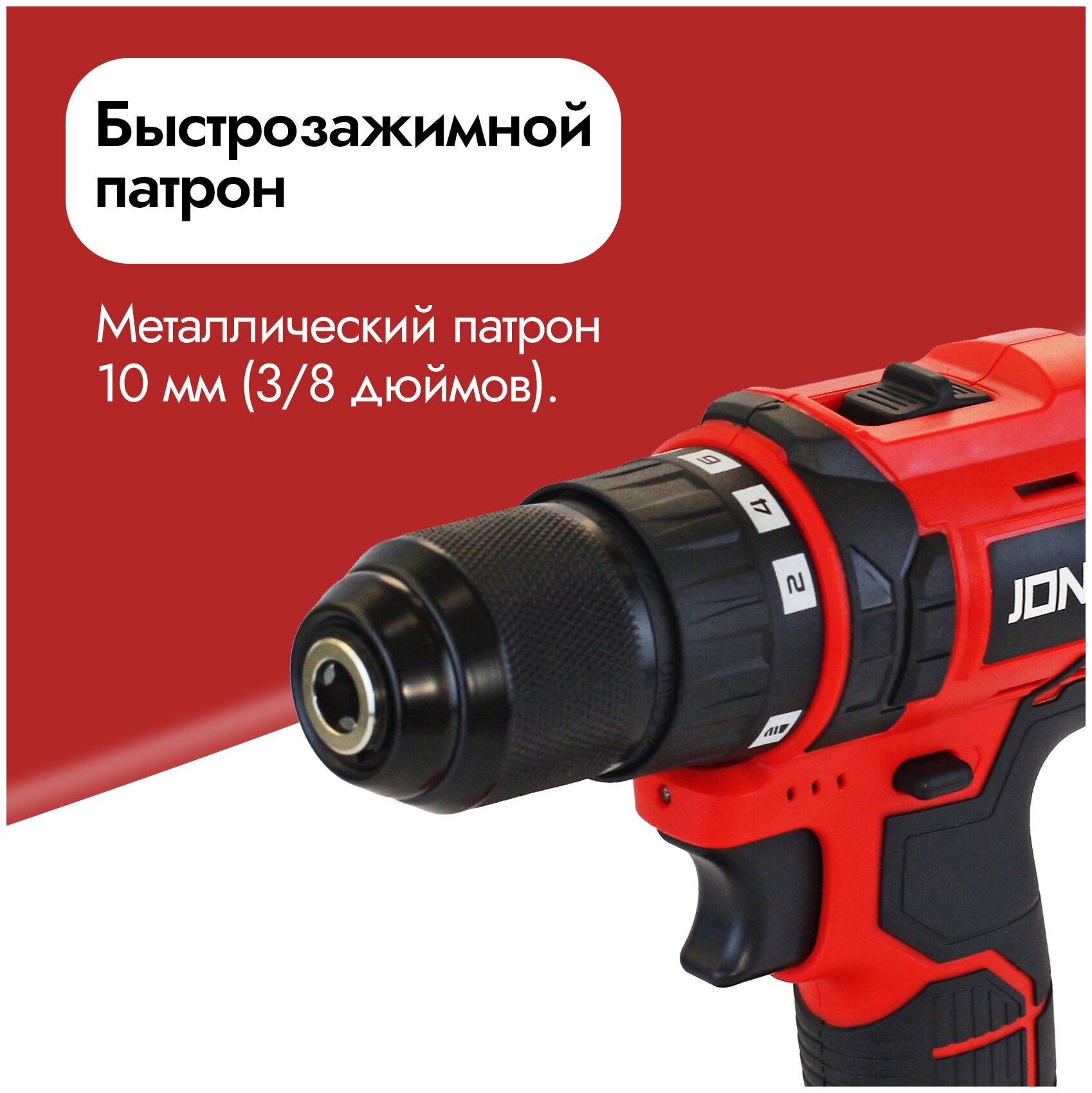 Дрель/шуруповерт Дрель аккумуляторная/Шуруповерт дрель электрическая / JONSER JAD-18PRO в кейсе ( 2 АКБ Li-ion, 2.0 Ач, 2 скорости, реверс, набор бит в комплекте)