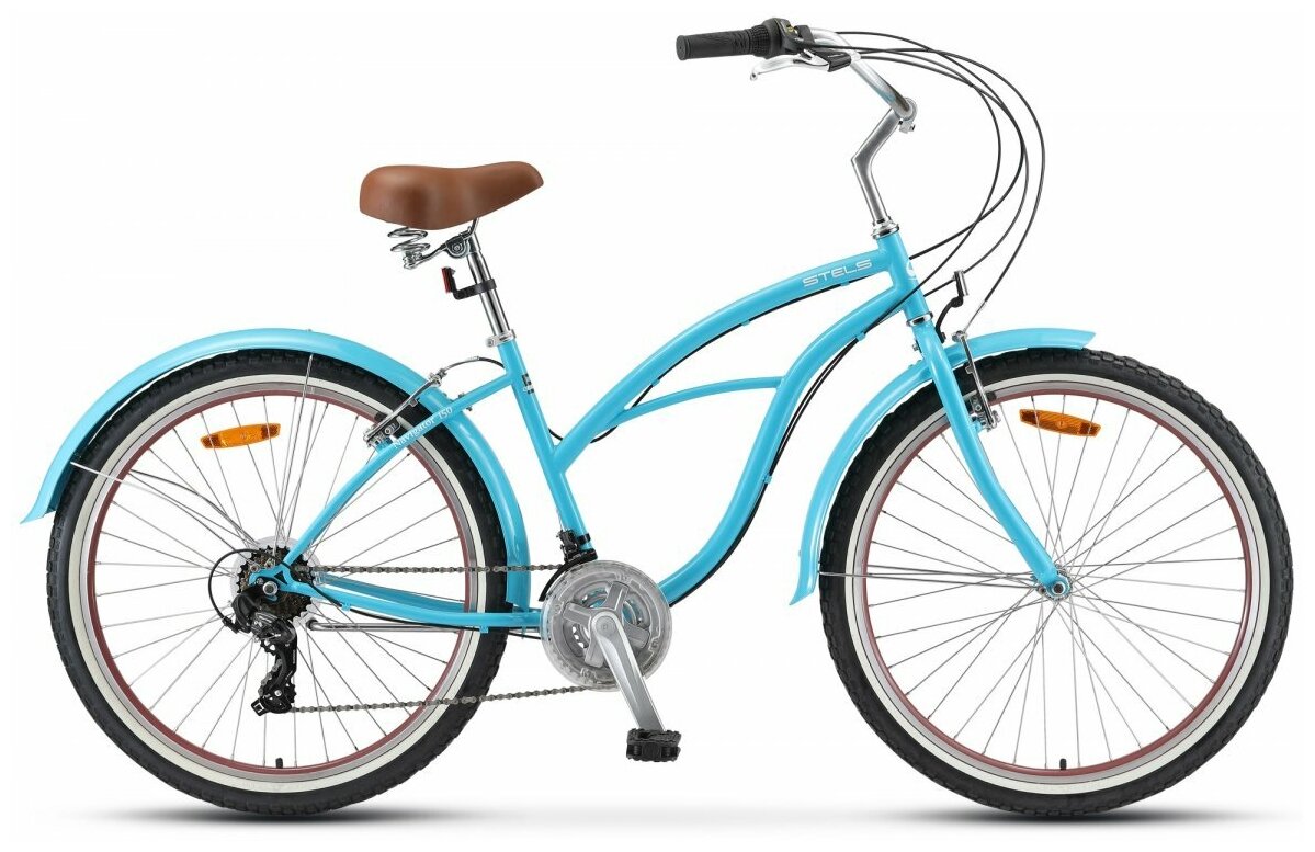 Лучшие цены. Велосипед STELS Navigator 150 Lady 21-sp (2020) для городских прогулок. Стильная моделька для представительниц женского пола. Прочность конструкции гарантирует прочная стальная рама. Жёсткая вилка STEEL даёт максимальный контроль над велосипедом. Четкость работы трансмиссии обеспечивает переключатель Shimano RD-TY300. Колеса с прочными покрышками идеальны для увлекательного катания в городе и за городом. Диаметр колёс - 26. Магазины в вашем городе.