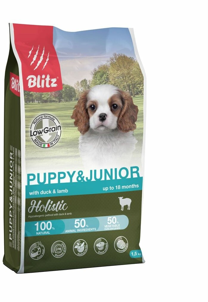 BLITZ HOLISTIC LOW-GRAIN PUPPY & JUNIOR DUCK & LAMB низкозерновой для щенков всех пород с уткой и ягненком (1,5 кг)
