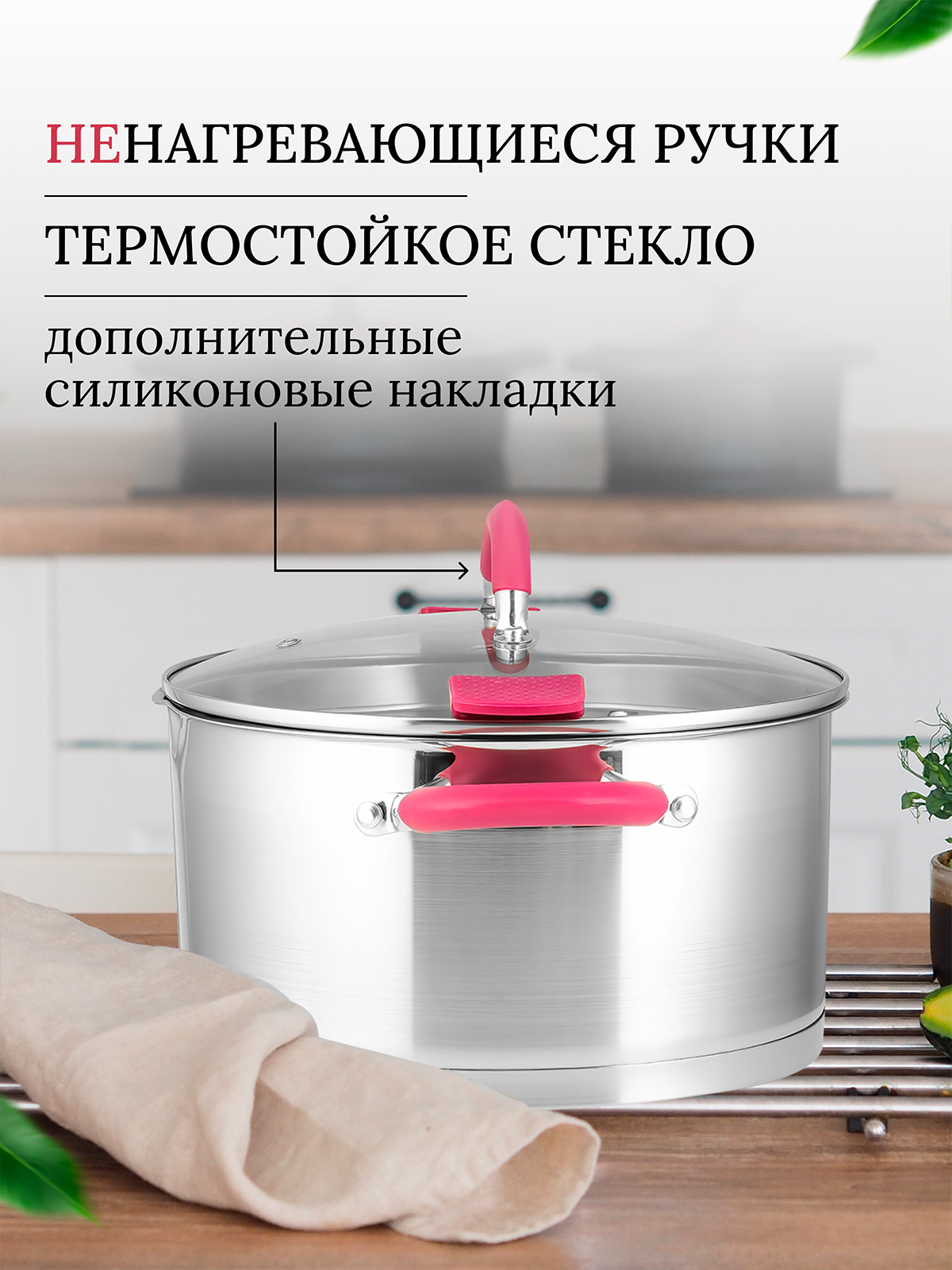 | Дополнительно | совместимость с индукцией, отверстие для пара, отверстие для слива, многослойное дно |