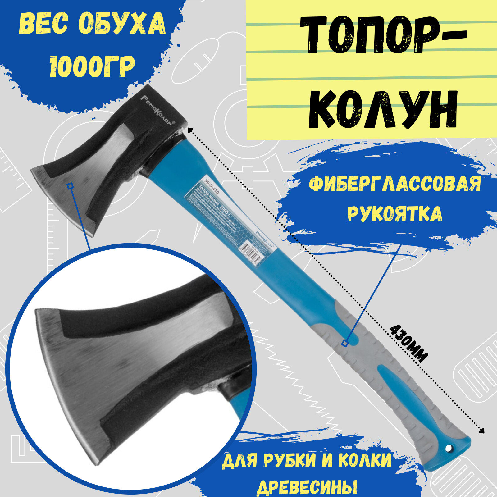 Топор-колун, фиберглассовая рукоятка 430 мм, клиновидное полотно, 1000 г, РемоКолор Pro