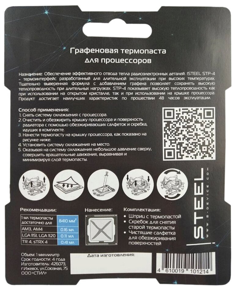 Термопасты и термопрокладки Термопаста !STEEL Graphene STP-4